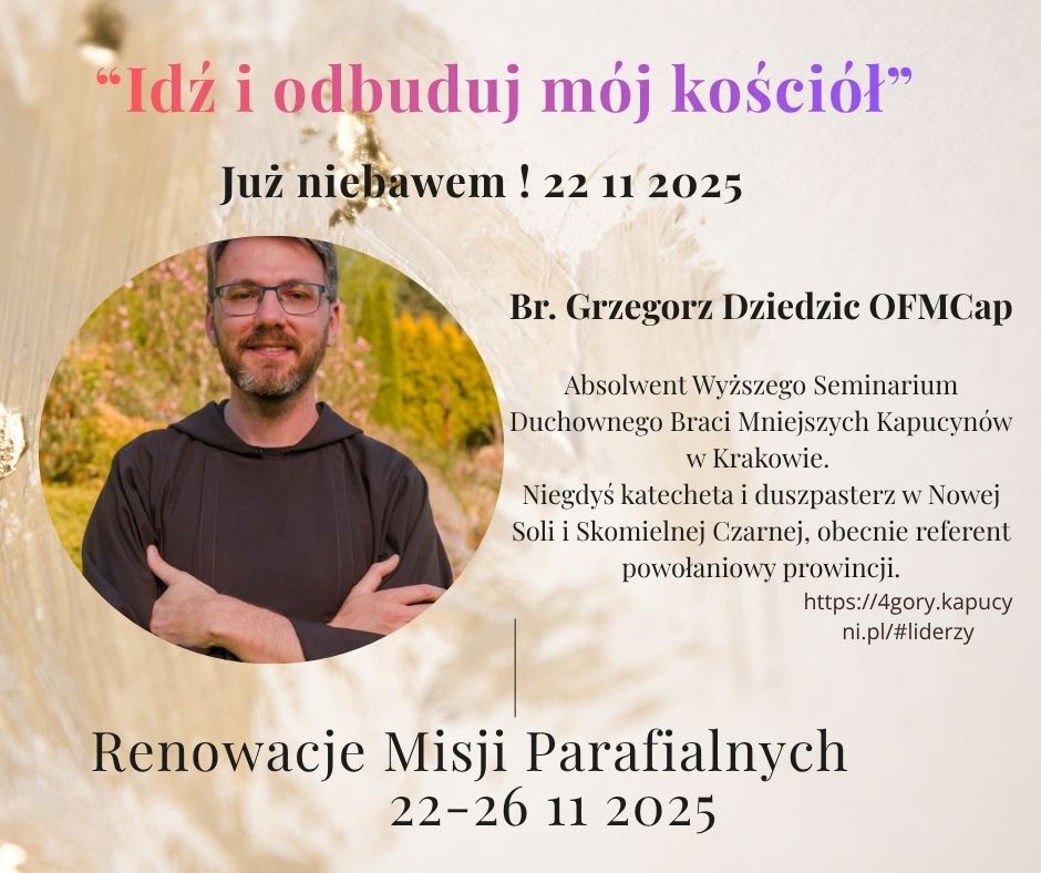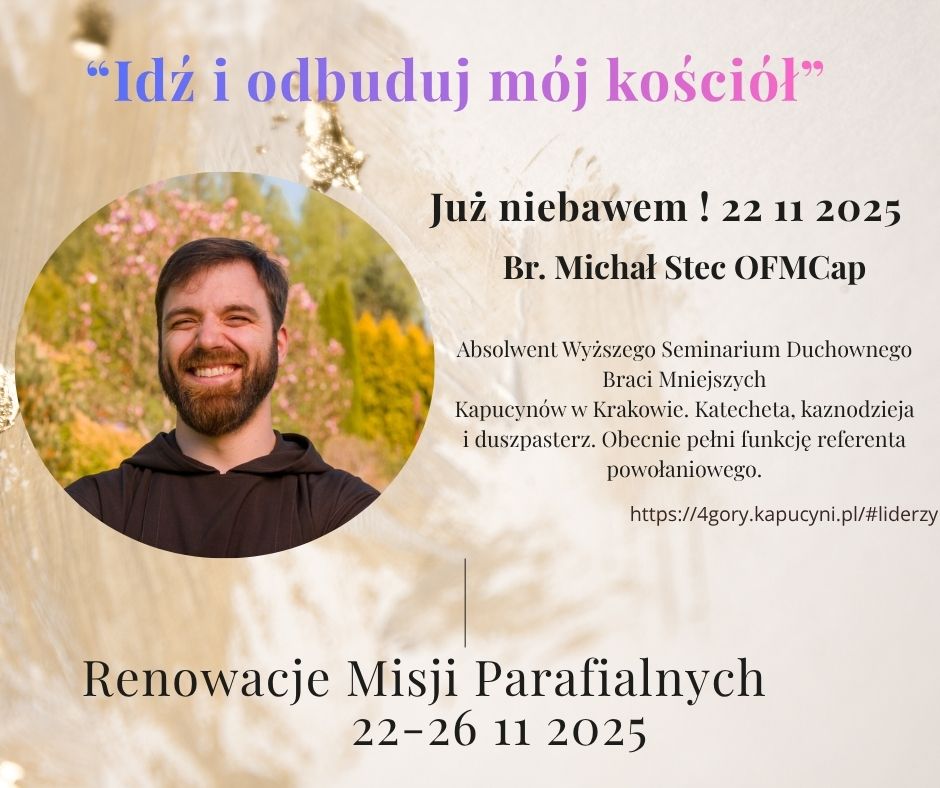 Już w sobotę 22 listopada o godz. 18:00 spotkamy się na Mszy św., podczas której bracia kapucyni – br. Michał Stec i br. Grzegorz Dziedzic – ponownie staną z nami przy ołtarzu, aby poprowadzić czas duchowego odnowienia.